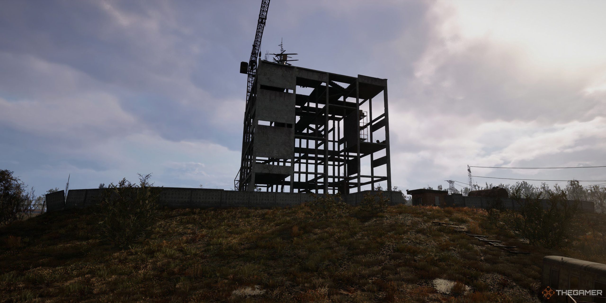 From the broken bridge, head northeast to a point of interest called The Cage, a ruined construction site in the Cement Factory region. It's about 1.5 kilometers or a five-minute run no buffs or stamina refills.