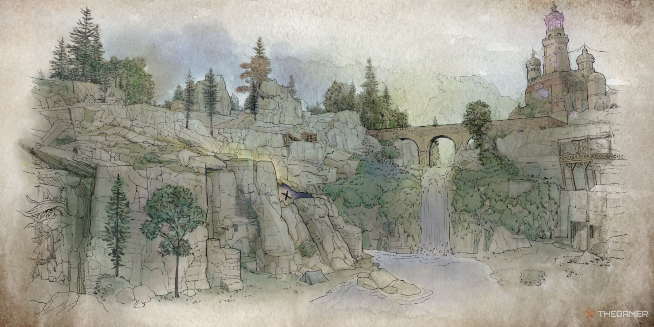 After you have obtained a treasure map from the Coastal Farms House with the artist's screen, you can open it through the Quest menu. On the map, You will find a bridge connecting one part of the country with the other with a towering building In the background, which can be clearly recognized as the city of Fior Mes Iverno.