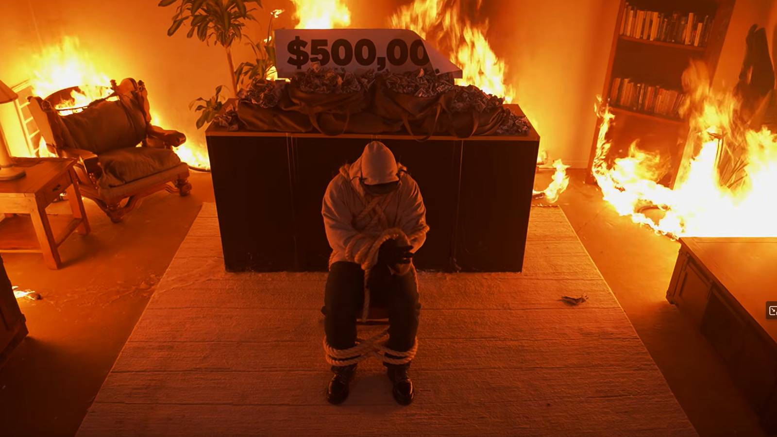 The video is called “You would risk dying for $ 500,000” and contains several individuals who perform dangerous pieces for a huge amount of money. So far, so much Mrbeast, but especially one challenge seemed much more dangerous than the others, and saw the man tied himself on a chair and left inside the burning room. He would have to free himself from his restrictions and grab as many bags of money as he could than the room burned to the ground.
