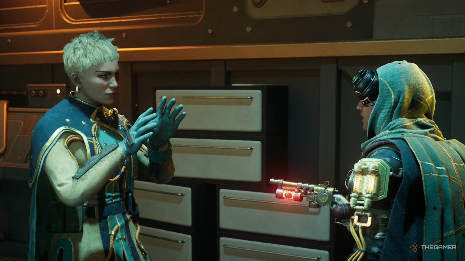 Factor Metadier in a room in The Outer Worlds 2.
