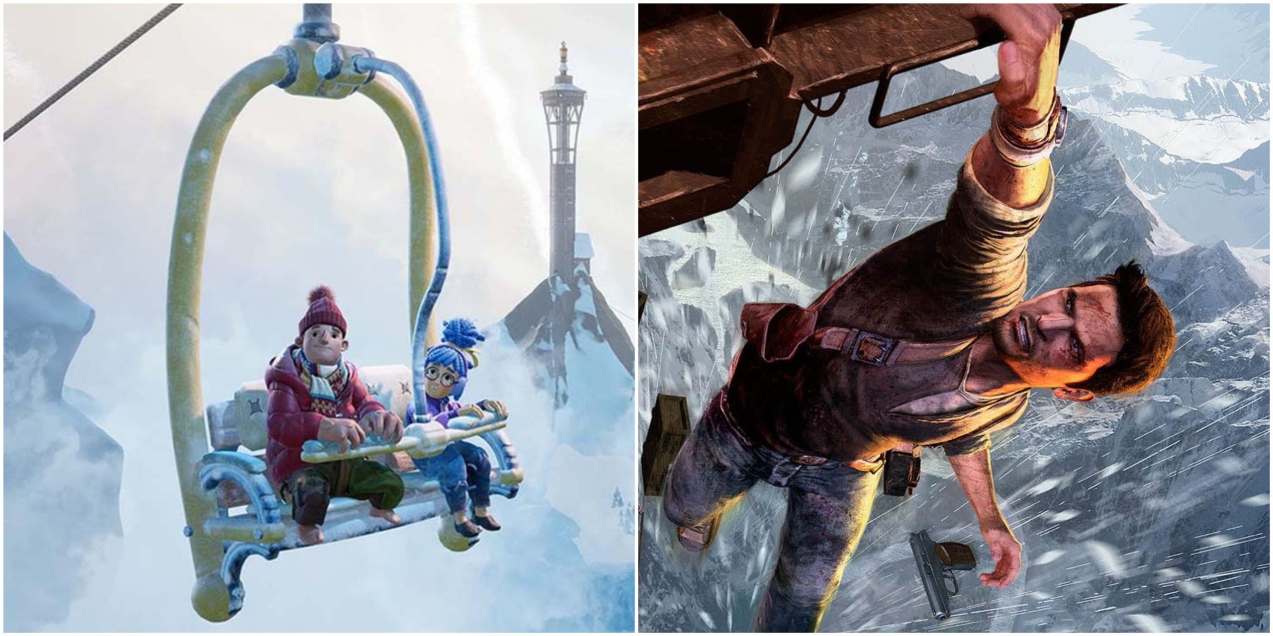 Uncharted 2 is one of the best action-adventure games players can get their hands on, with the game's introduction setting the stage for a bombastic experience. Players control Nathan Drake, who must escape a train on the edge of a cliff, climb this falling structure, and barely make it to safety when he reaches the cliff of a snowy mountain.
