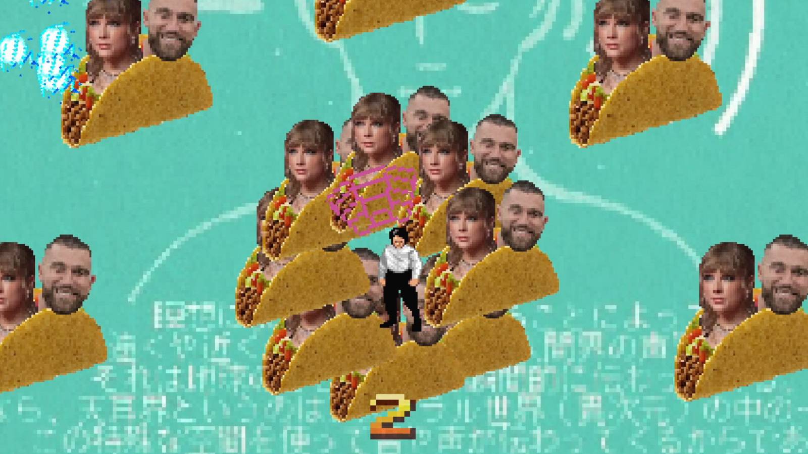 The images from Hong Kong 2097 show various absurd backgrounds, such as George Washington preparing to kiss another man, what look like the heads of Taylor Swift and Travis Kelce in tacos, and the famous Vince McMahon meme.