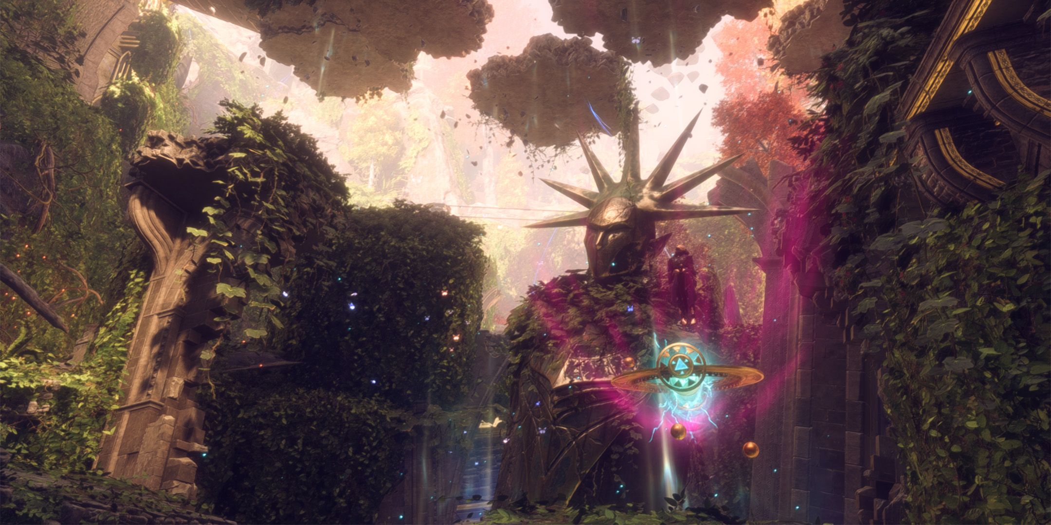 To repair an artifact in Jagged Ruins, players need it tinker with the three crystals attached to it.