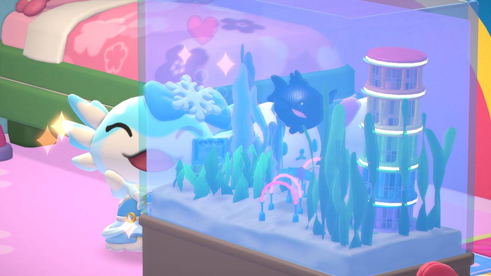 Like any other fish in Hello Kitty Island Adventureplayers can add shadow sprays to aquariums in any household. This includes the rooms available in Rainbow Tower City Town. In addition, players can release sprays of shadows into a Good try to get more Fwish themed furniture.